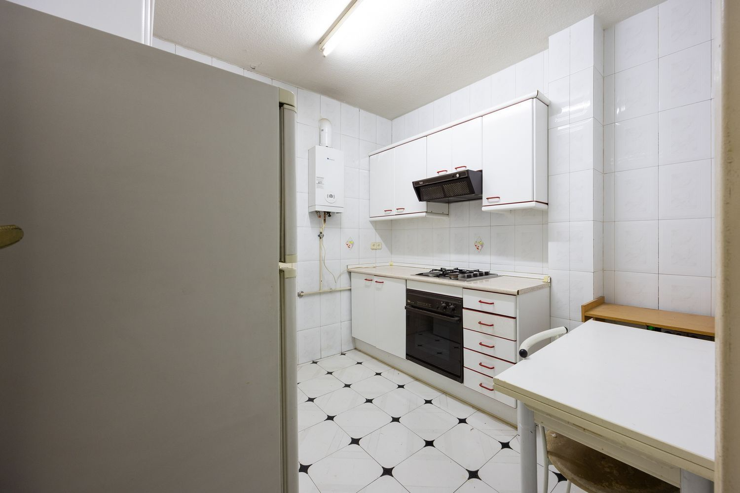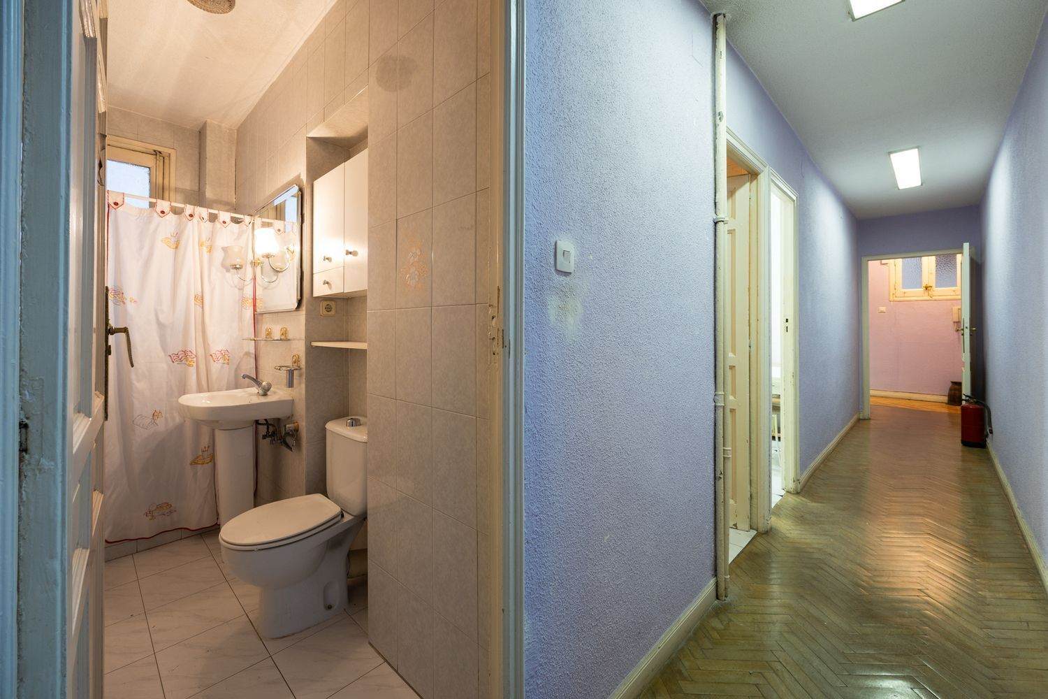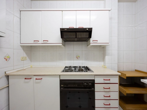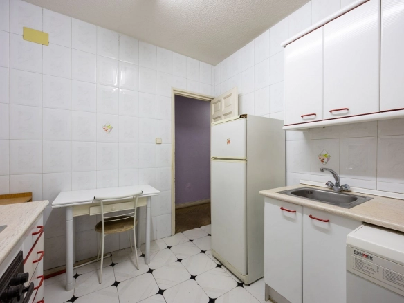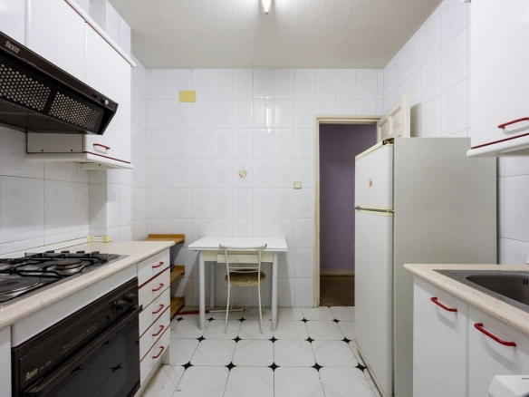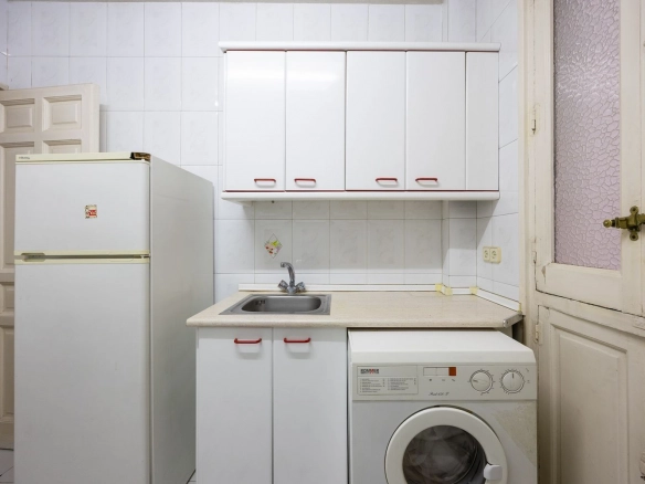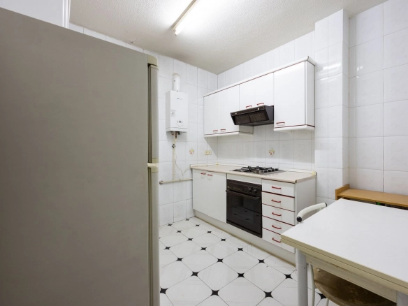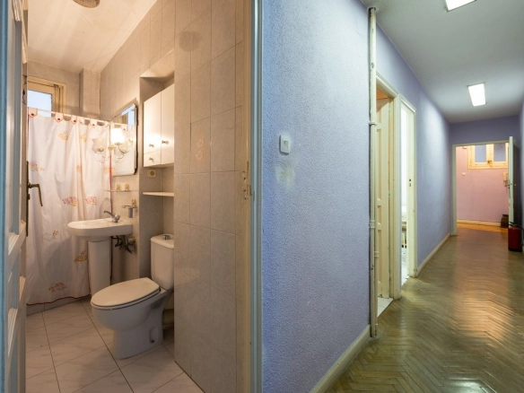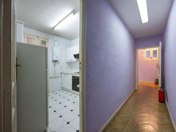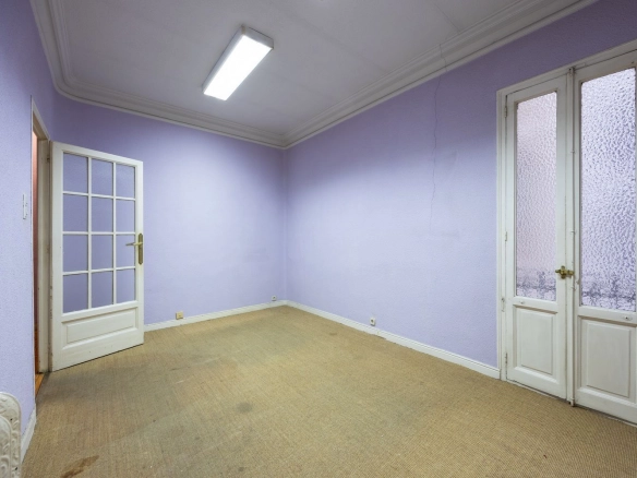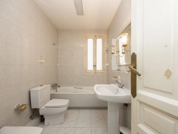 It also features two full bathrooms, both with natural ventilation, a particularly valuable feature in this type of property and increasingly rare in the neighborhood. The kitchen is separate and has a window, offering natural light and the possibility of either maintaining its traditional character or opening it up to social areas, depending on the renovation plan.