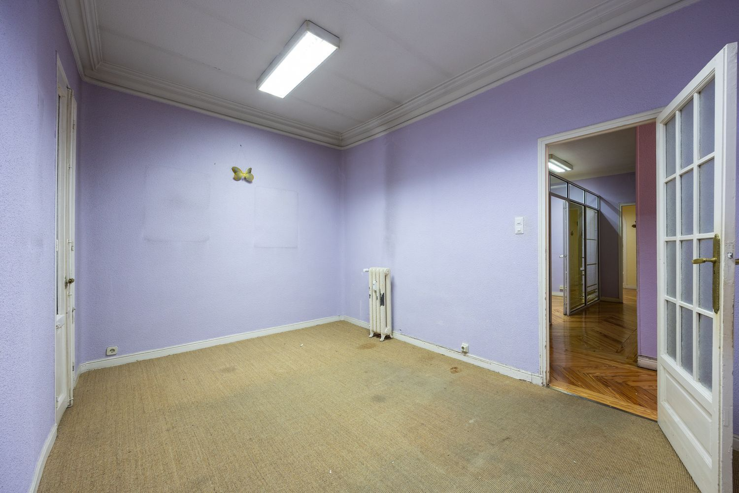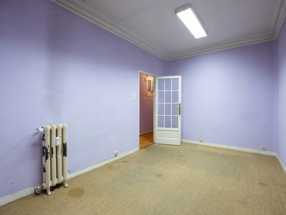 With 188 square meters of living space, the property offers an unusual scale for the area, especially suited to those who appreciate spaciousness and the opportunity to design a truly bespoke home. The current layout follows the classic typology of large Madrid homes, with spacious rooms, generous hallways, and a clear separation between living and sleeping areas.