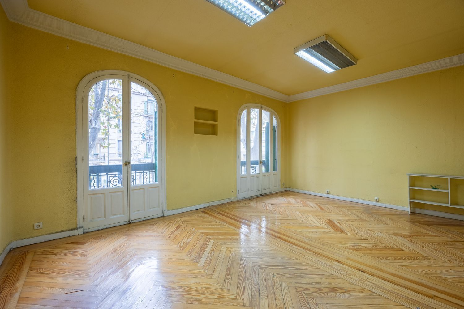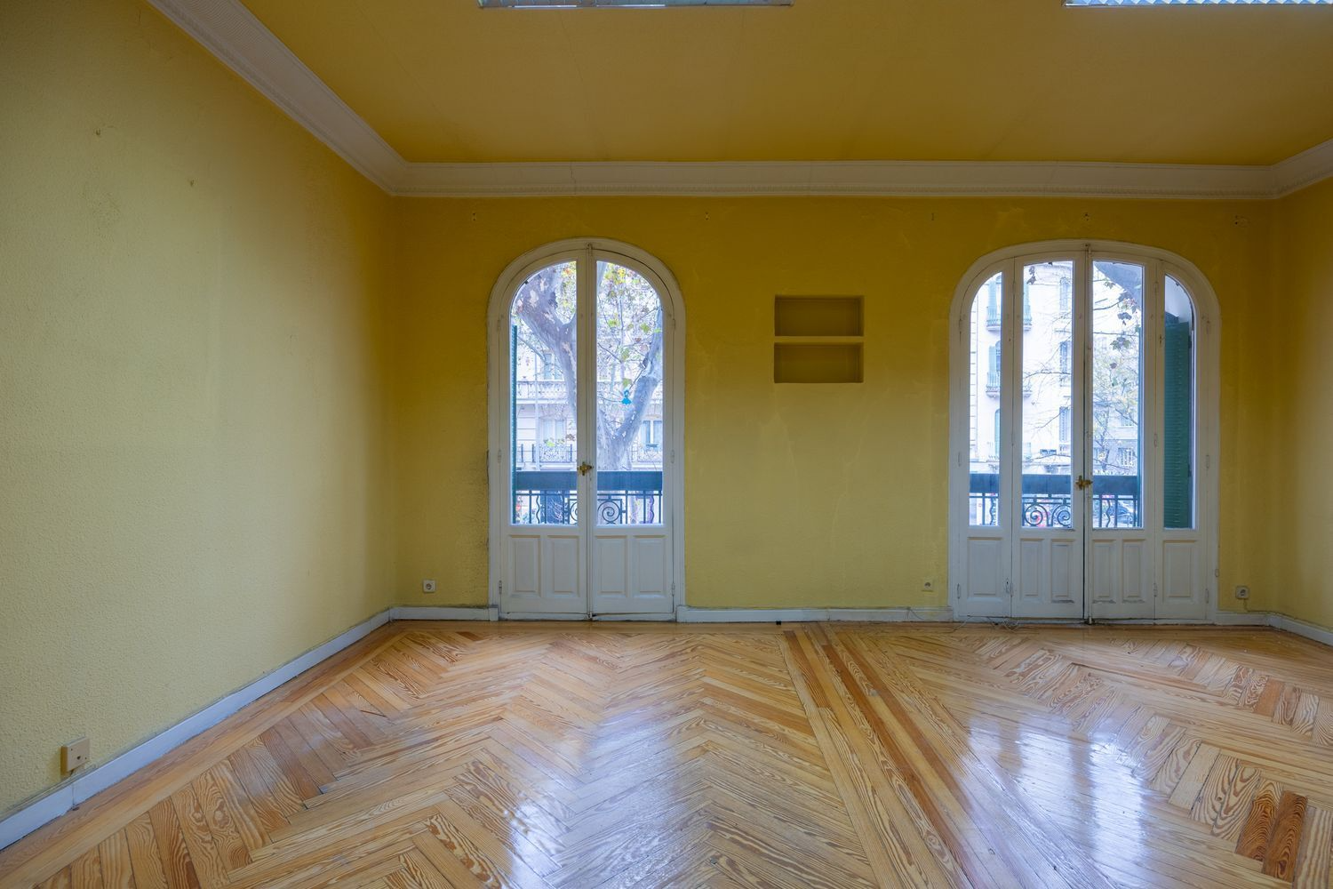 The herringbone wood floors, original woodwork, high ceilings, and preserved moldings lend undeniable heritage value. These elements not only define the building’s aesthetic but also create an atmosphere difficult to replicate in contemporary developments. This architectural foundation provides the perfect setting for a high-level renovation, capable of combining respect for the original features with modern solutions, creating a balance between history and contemporary design.