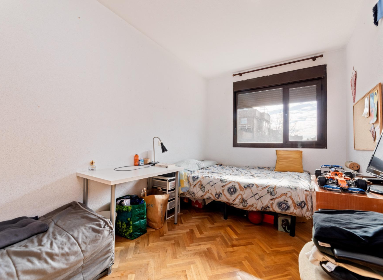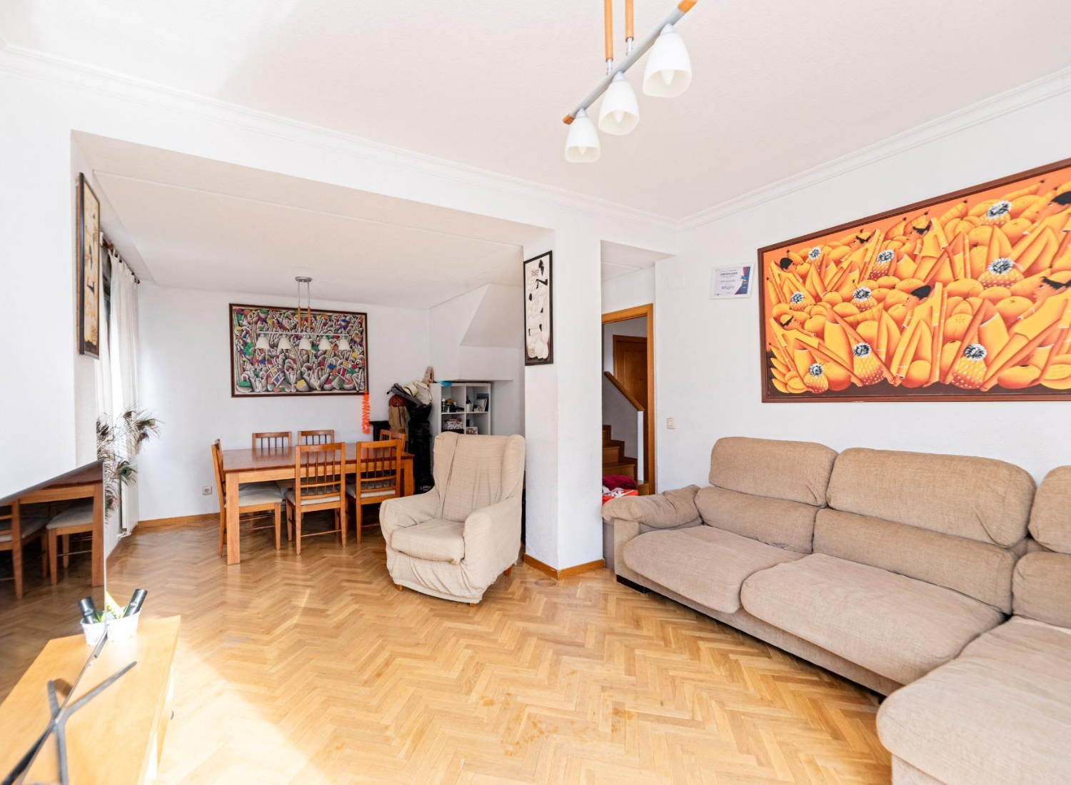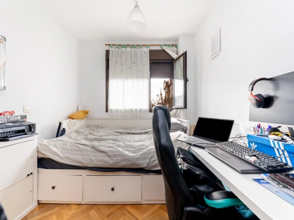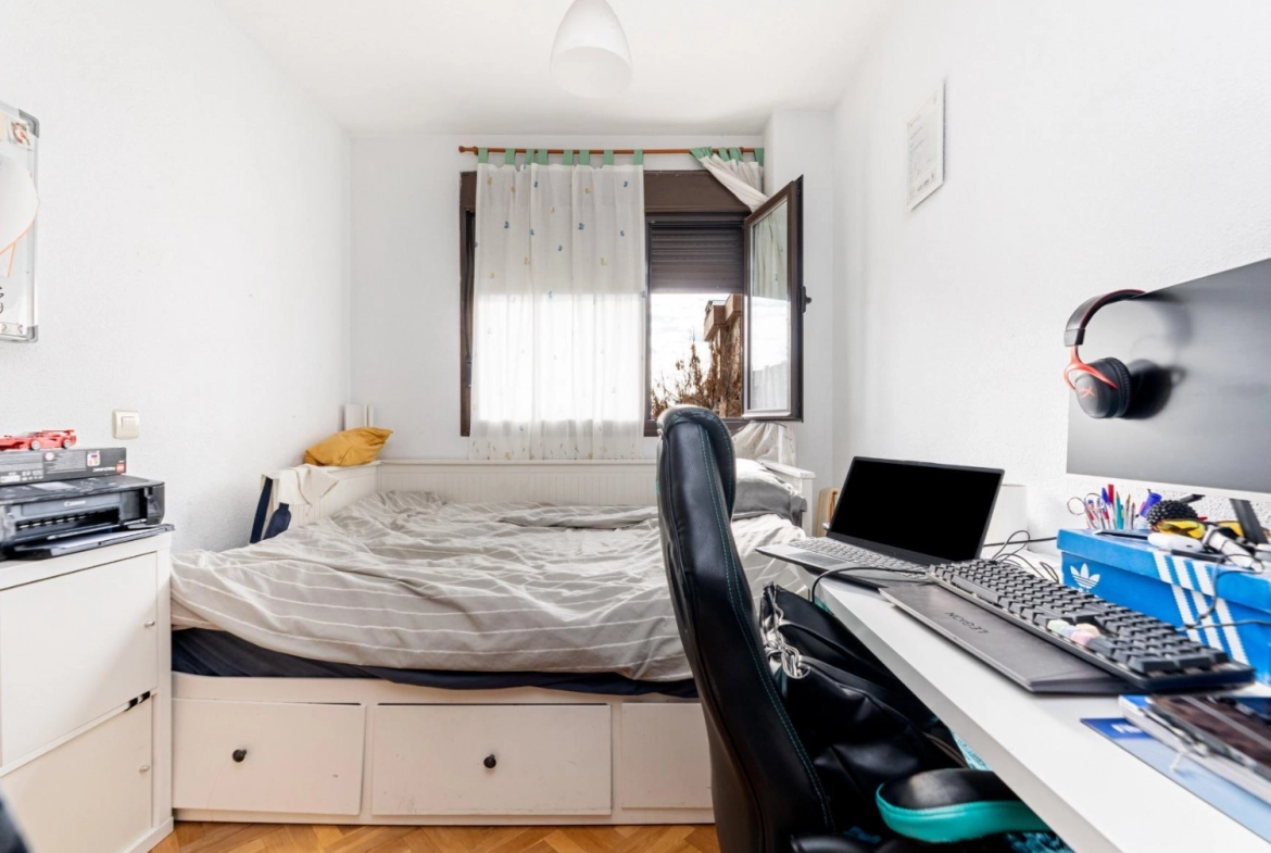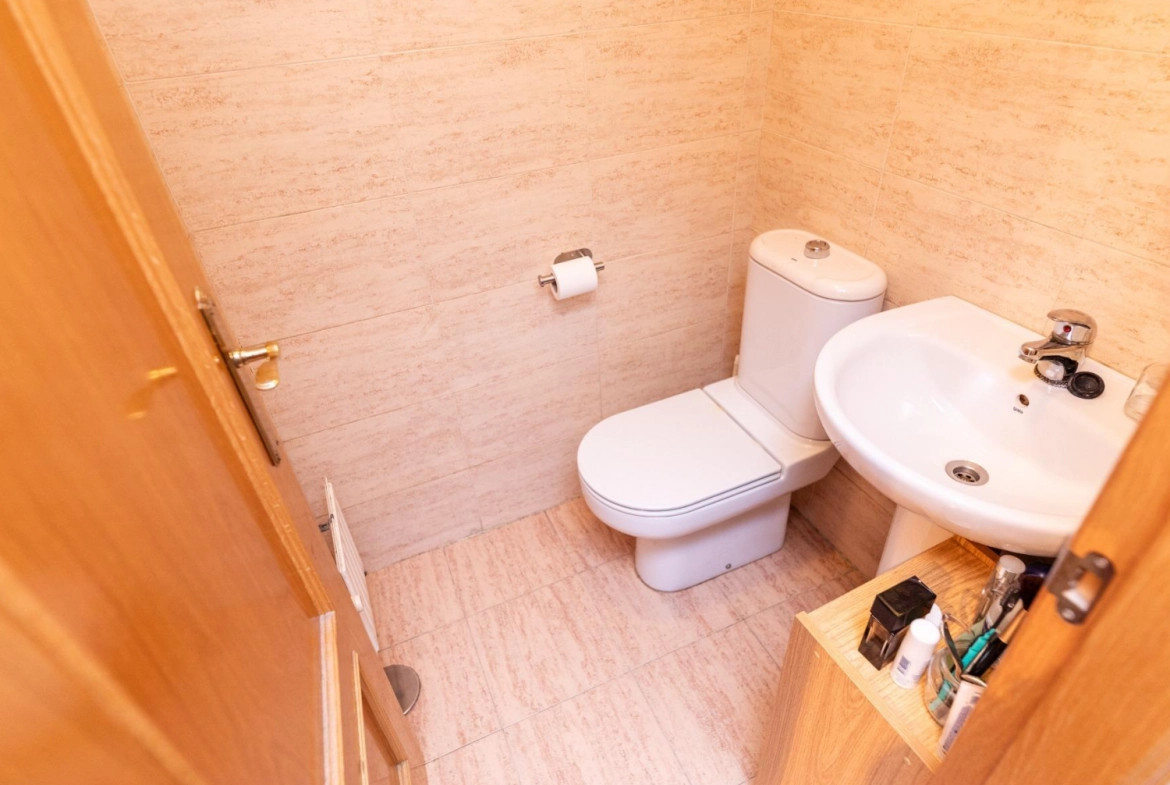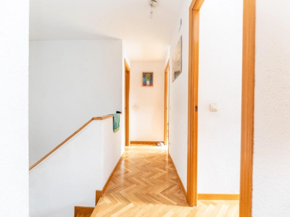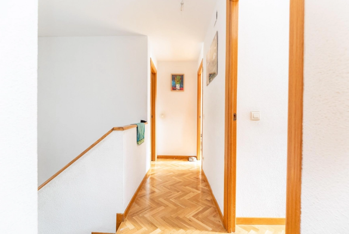 The upper floor is reserved for the sleeping area, ensuring privacy and tranquility. All three bedrooms are exterior-facing, bright, and well-proportioned. The master suite is particularly spacious and features an en-suite bathroom, creating an intimate and comfortable space for rest. The secondary bedrooms offer versatility, adapting to a child’s bedroom, office, or study area, depending on the family’s needs. The second full bathroom, also spacious and well-distributed, is located on this floor.