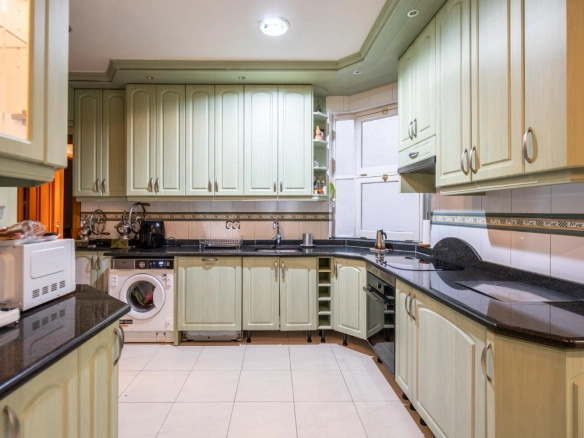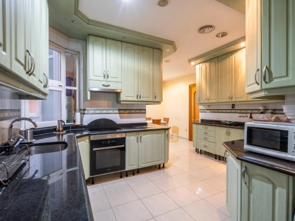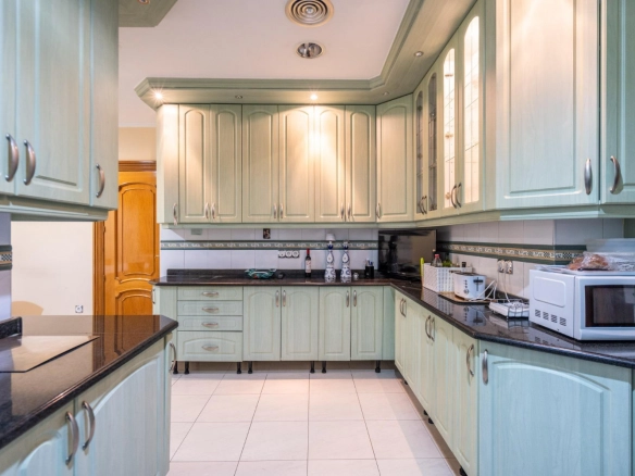 The exceptionally spacious kitchen is one of the home’s greatest assets. Its size allows for the comfortable integration of a breakfast area, ample storage, and large work surfaces, making it a practical and pleasant space for everyday life.