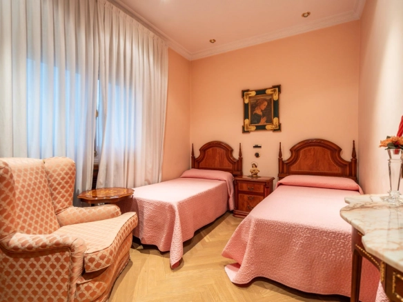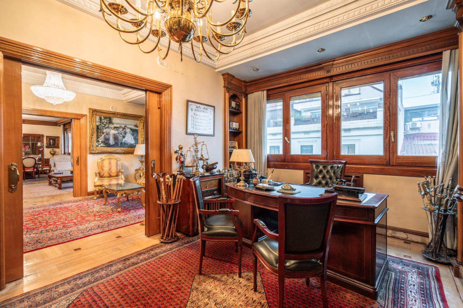 From the moment you step inside, the home exudes an atmosphere of distinction and architectural solidity, typical of the stately homes of Chamberí. The spacious entrance halls and corridors structure the space elegantly and functionally, allowing for fluid circulation and a clear separation between the social, private, and service areas.