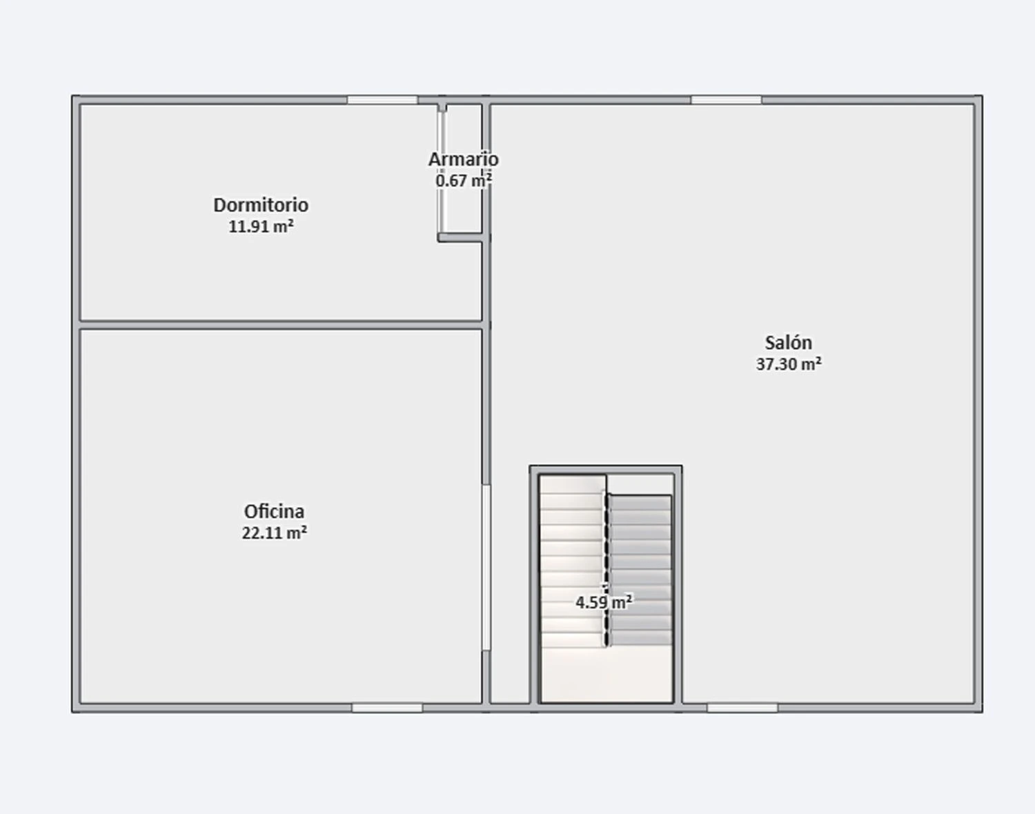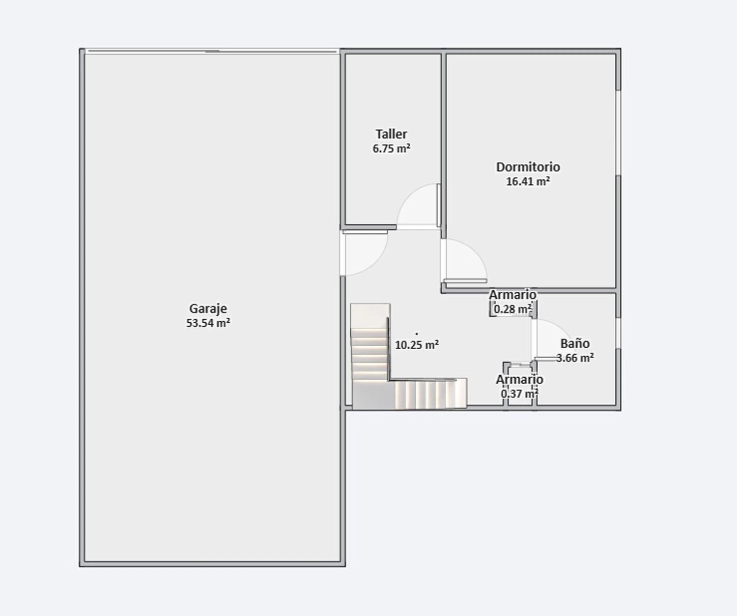Esta planta alberga un dormitorio de invitados de 16 m² (o gimnasio, trastero, sala de juegos, etc.), un taller, zona de hobbies o lavadero de 7 m², un aseo de cortesia.