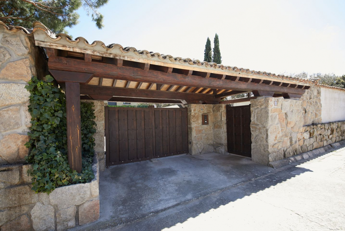 - Tarima y viguería estructural de roble macizo en varias de las estancias y porches.
