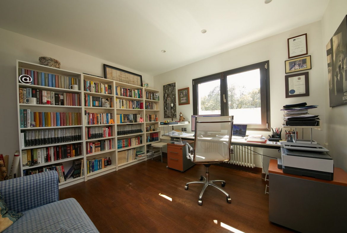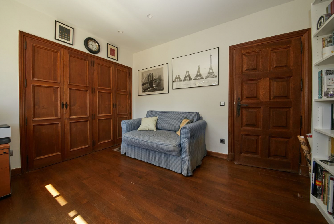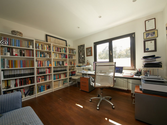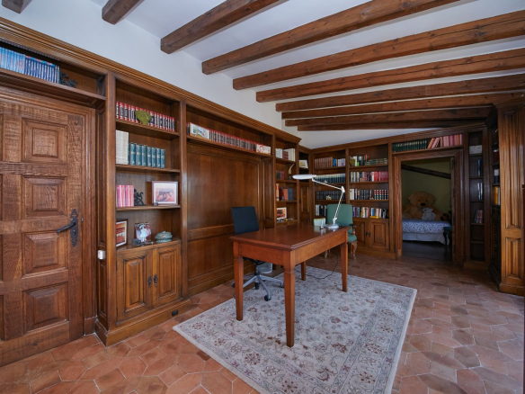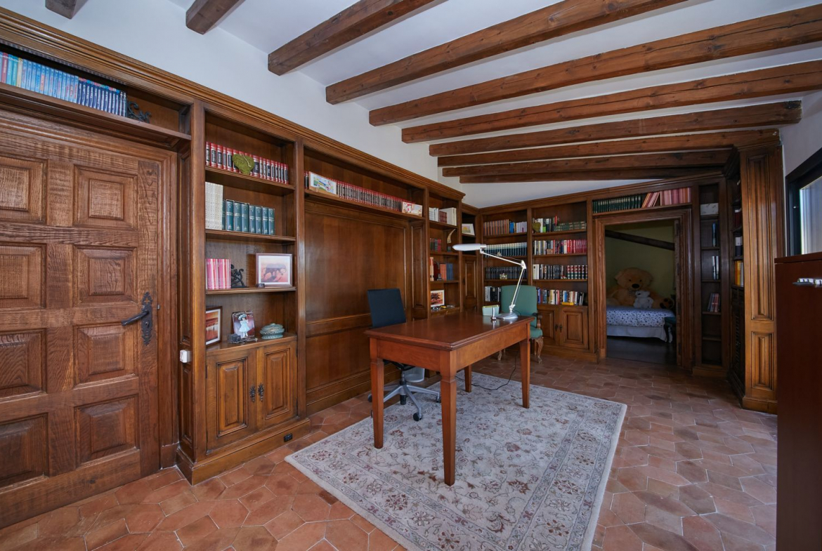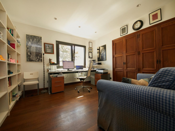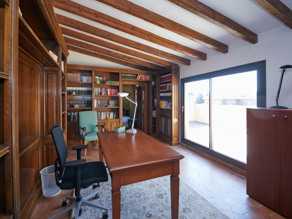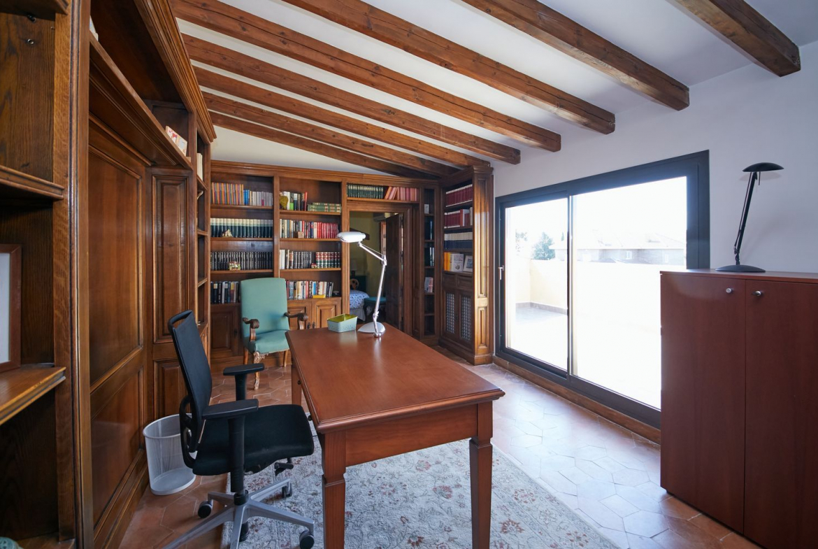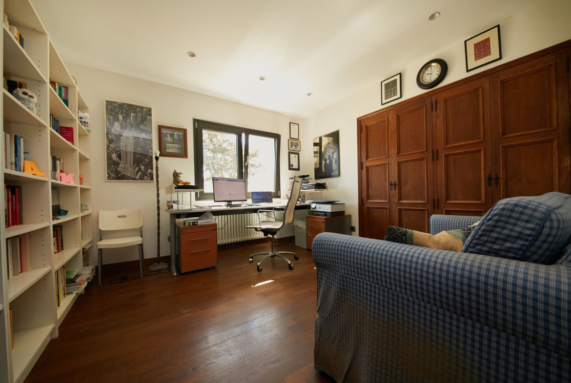 En esta planta encontramos un despacho con muebles de madera a medida y acceso a la terraza, un salón con chimenea y acceso a otra terraza y un dormitorio con cuarto de baño completo.