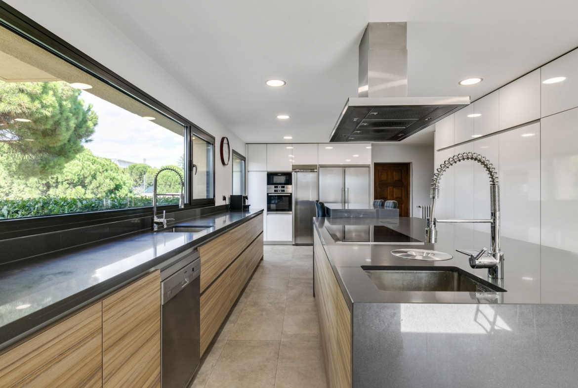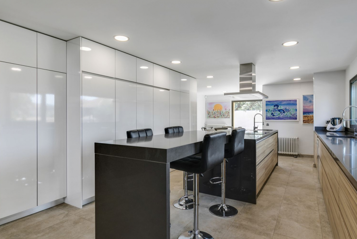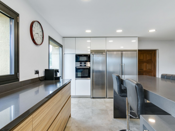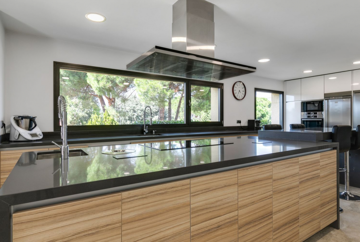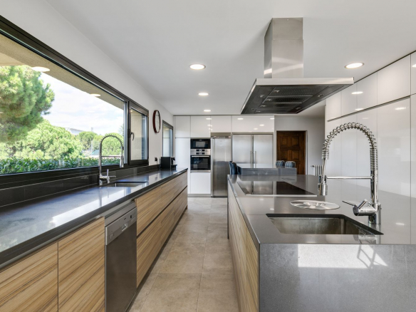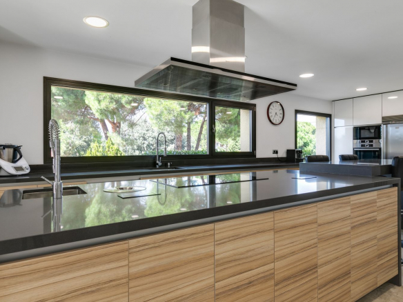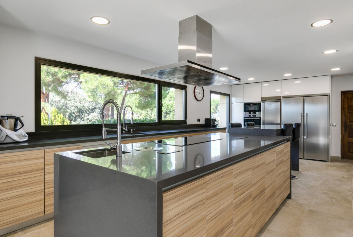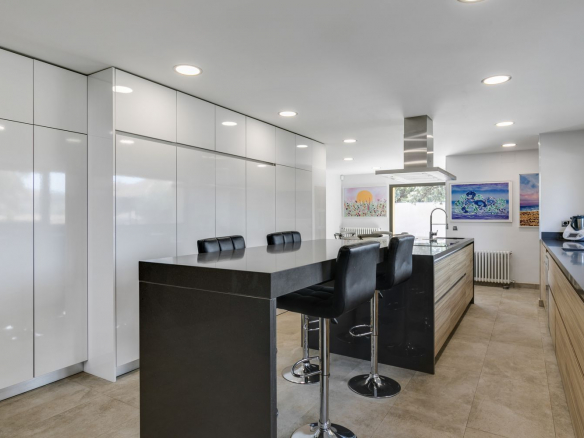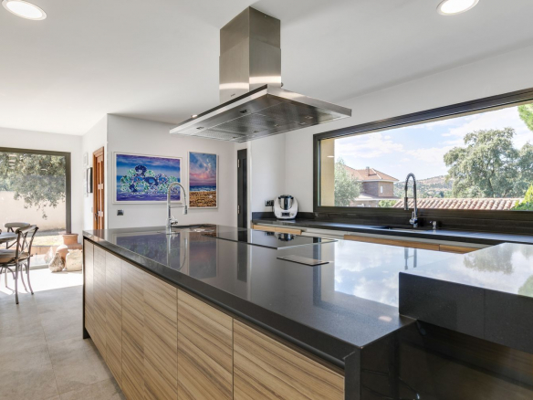 - Una gran isla en la cocina con encimera de Silestone en dos niveles.