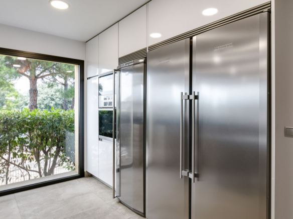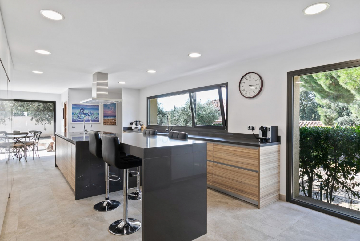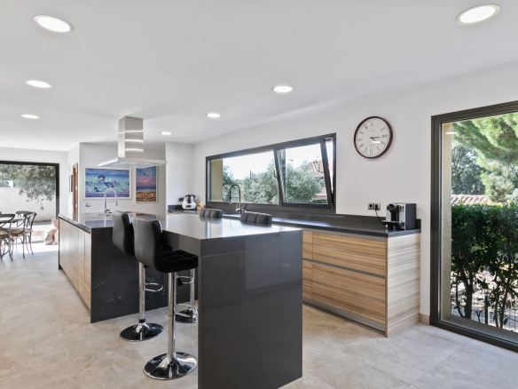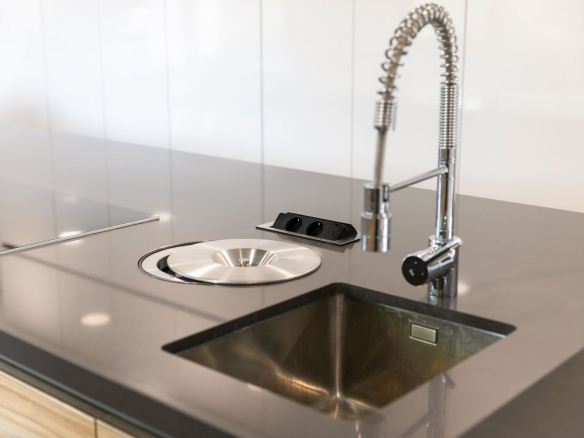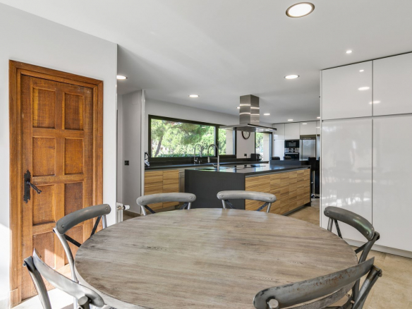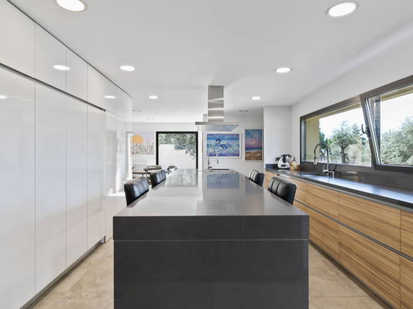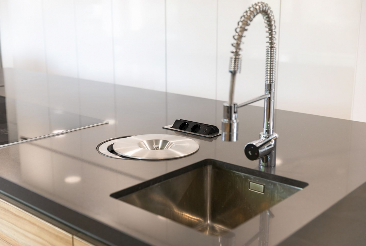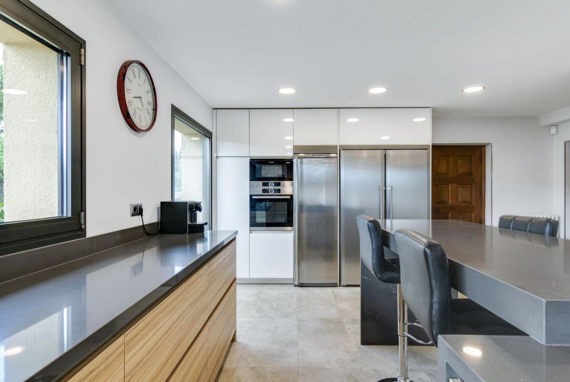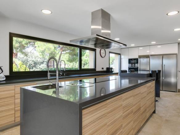 - Una gran isla en la cocina con encimera de Silestone en dos niveles.
