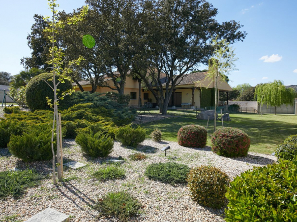 Esta fantástica parcela alberga 600 m² de vivienda; otros 300 m² de edificaciones anexas; aljibe y pozo propios, escriturados, con más de 24.000 litros de capacidad que permiten el riego del amplio jardín (que actualmente está automatizado) y el llenado de una gran piscina de 2,5 m de profundidad, lo que conlleva un ahorro significativo en el consumo de agua.