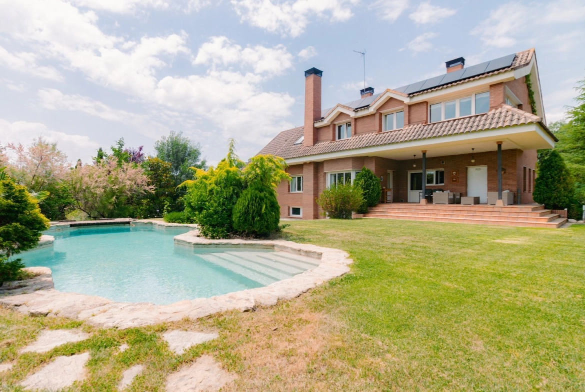 Ubicado en una de las calles más consolidadas y tranquilas de la urbanización Molino de la Hoz, este chalet independiente representa una oportunidad única para quienes valoran la calidad constructiva, los espacios generosos y un entorno natural privilegiado. Con 582 m² construidos sobre una magnífica parcela de 2.465 m², la vivienda ofrece una distribución equilibrada, funcional y llena de posibilidades, pensada para disfrutarla hoy y adaptarla al futuro.