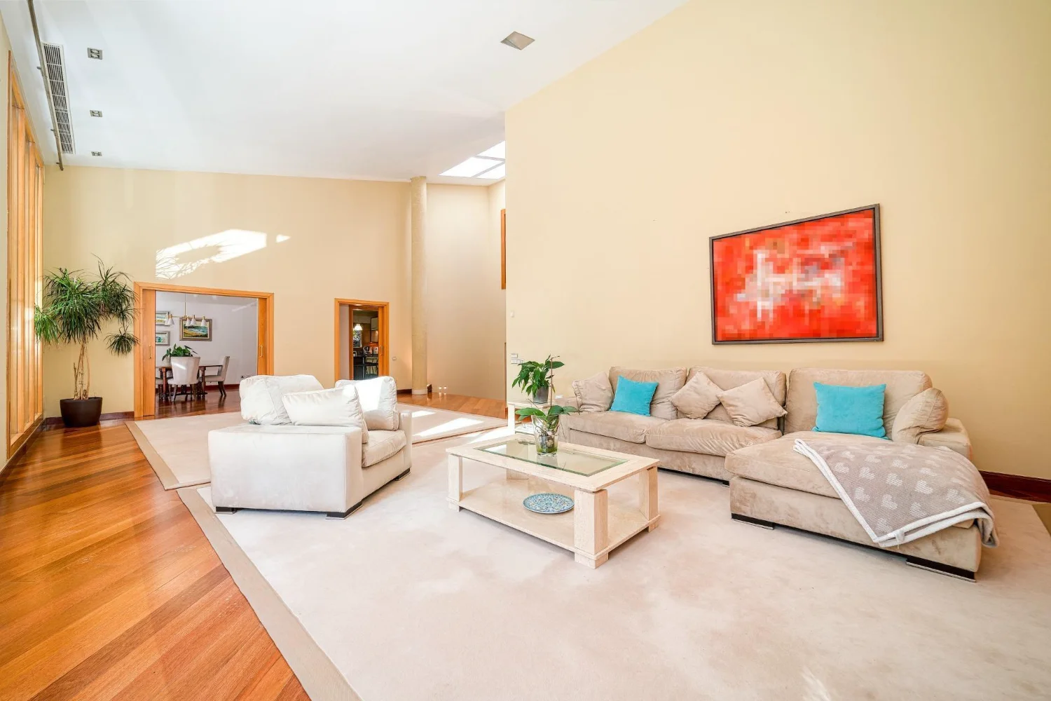 Un vestíbulo de entrada amplio y elegante da paso a las diferentes zonas de día. El salón principal, de grandes dimensiones, destaca por su escala, su abundante luz natural y su capacidad para crear distintos ambientes de estar y descanso. Este espacio se convierte en un lugar idóneo tanto para el día a día como para la recepción de invitados.