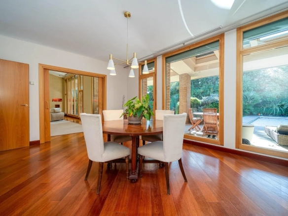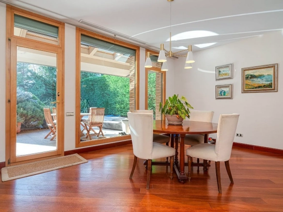 El comedor independiente, conectado de forma natural con el salón, ofrece un entorno ideal para celebraciones y reuniones familiares, manteniendo siempre una sensación de privacidad y confort.