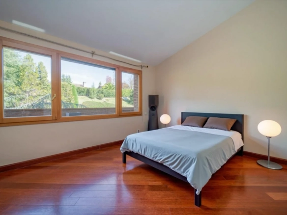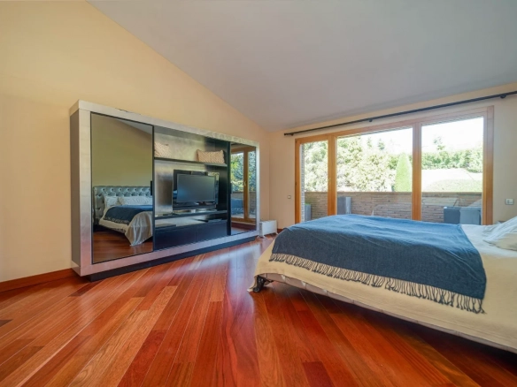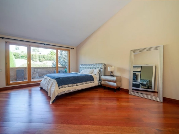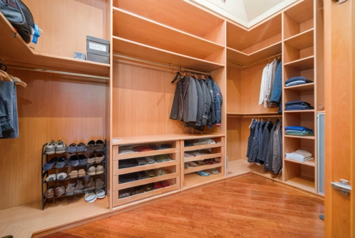 La suite principal destaca por su amplitud y distribución equilibrada, con una zona de dormitorio de gran tamaño, vestidor independiente y baño en suite, creando un espacio privado pensado para el descanso y el bienestar.