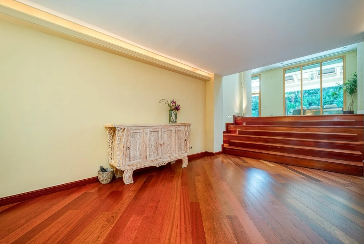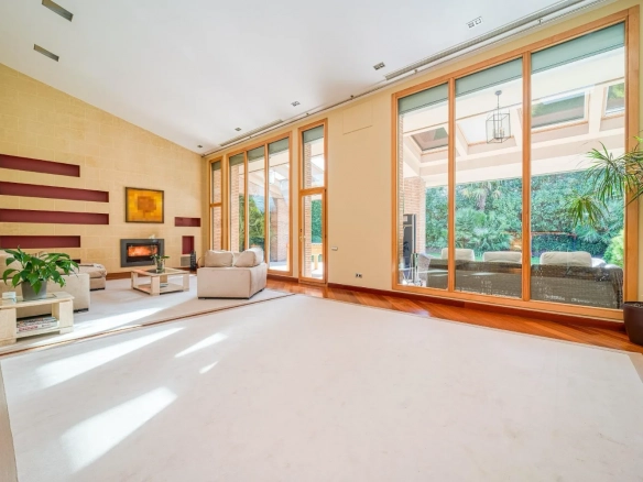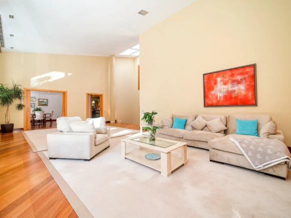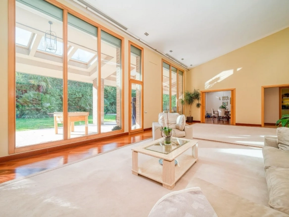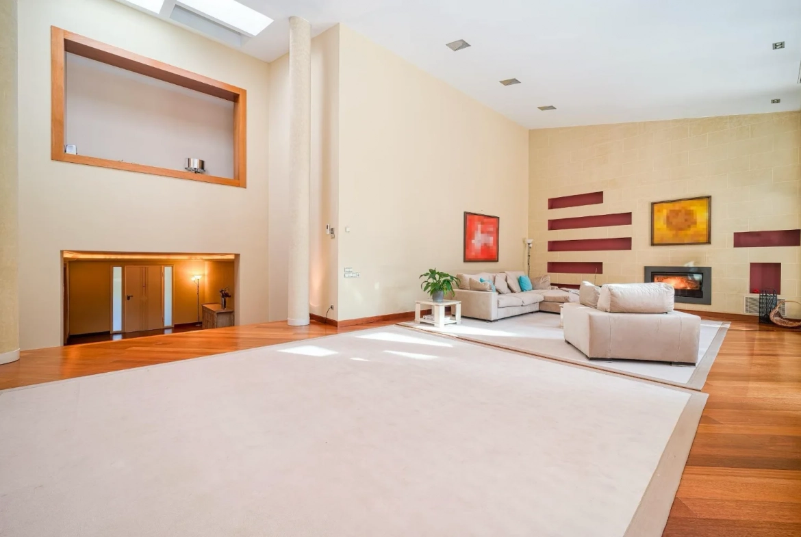 Un vestíbulo de entrada amplio y elegante da paso a las diferentes zonas de día. El salón principal, de grandes dimensiones, destaca por su escala, su abundante luz natural y su capacidad para crear distintos ambientes de estar y descanso. Este espacio se convierte en un lugar idóneo tanto para el día a día como para la recepción de invitados.