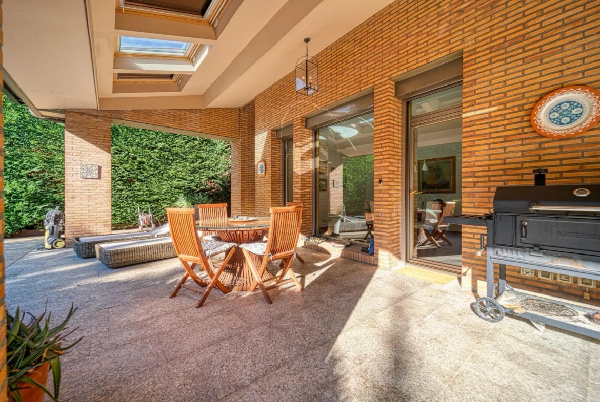 La propiedad se asienta sobre una parcela generosa, con jardín privado y piscina, y se distribuye en tres plantas perfectamente organizadas, combinando espacios amplios, estancias versátiles y una cuidada conexión entre interior y exterior.
