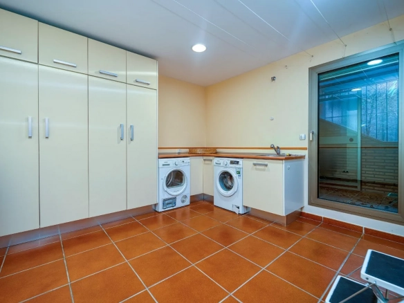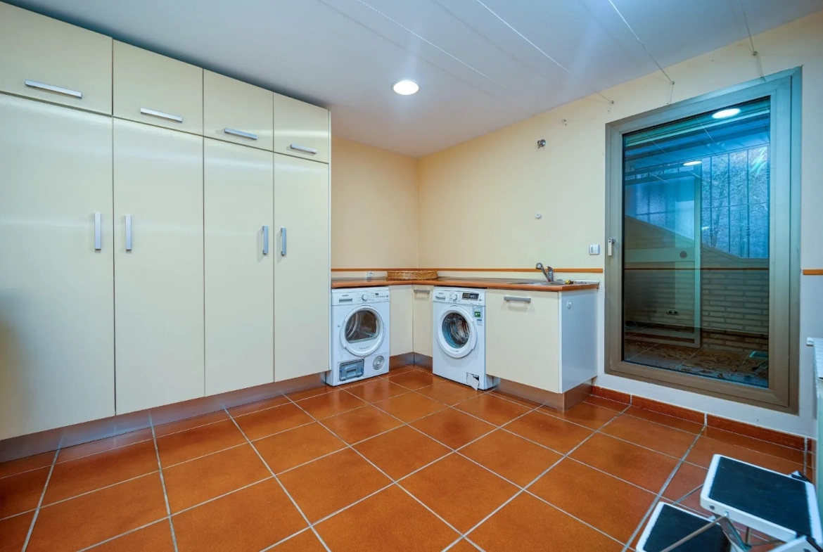 Dispone de un garaje de gran capacidad, con espacio para 4 vehículos, así como de amplias zonas de almacenamiento, lavandería y cuartos técnicos, perfectamente integrados y organizados.