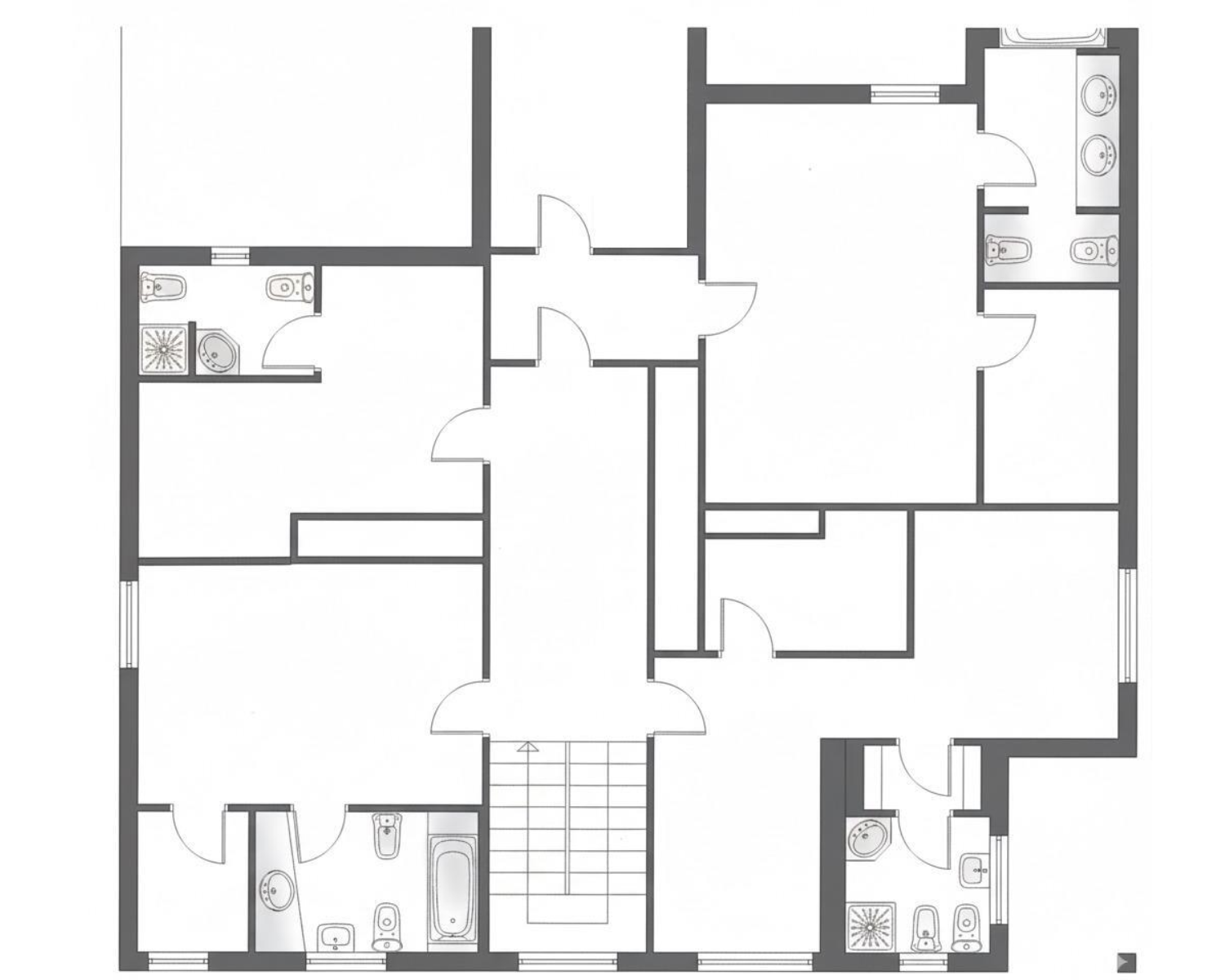 La planta superior está destinada íntegramente al descanso. Aquí se distribuyen cuatro amplios dormitorios, todos ellos exteriores y muy luminosos, y cada uno equipado con su propio baño privado, garantizando la máxima privacidad y comodidad para cada miembro de la familia o invitados.