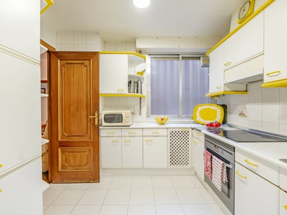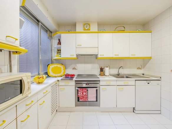 La cocina, de 8 m², destaca por su amplitud y por ofrecer una distribución especialmente cómoda. Dispone de zona de office, ideal para desayunos y comidas informales. Su estructura permite una reforma abierta hacia el salón para quienes buscan un concepto moderno y diáfano, o mantenerla independiente para quienes valoran la privacidad y el orden en el día a día. Asimismo, la vivienda cuenta con un aseo adicional en la zona de día, perfecto para invitados.