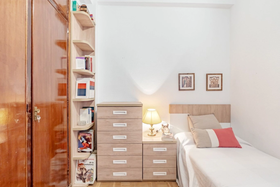 La zona más privada del piso acoge tres dormitorios de aproximadamente 12 m², 11 m² y 8 m², todos ellos con armarios empotrados y con luz natural. Son estancias versátiles que pueden adaptarse a diferentes necesidades: dormitorios infantiles, despacho profesional, sala de lectura, área de juegos o incluso vestidor.